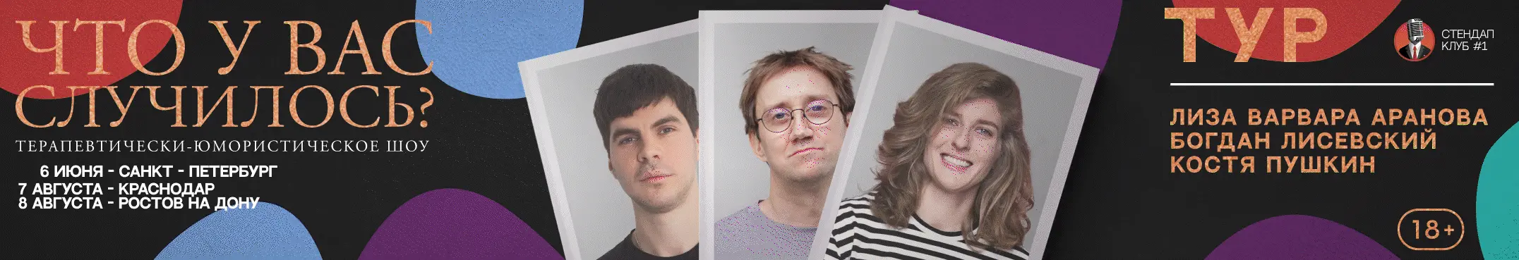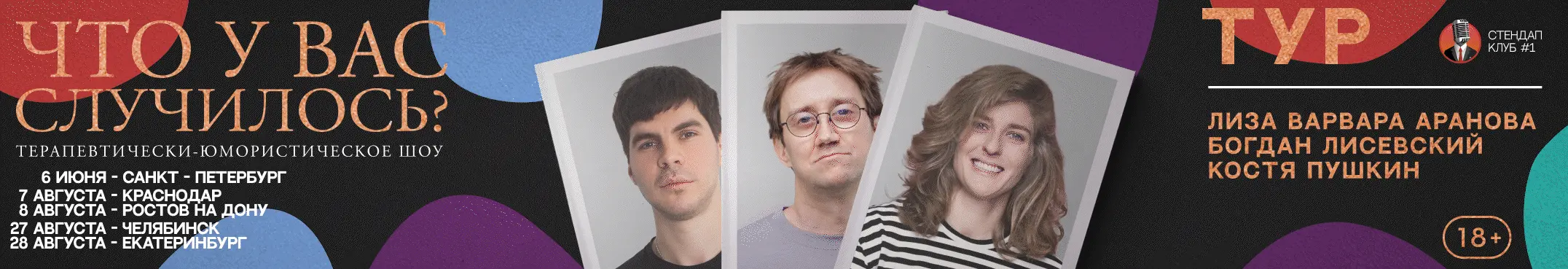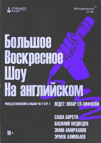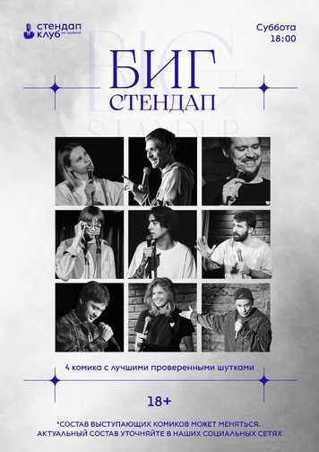 Состав выступающих комиков на афише может меняться, актуальный состав уточняйте в чат-боте или в наших социальных сетях