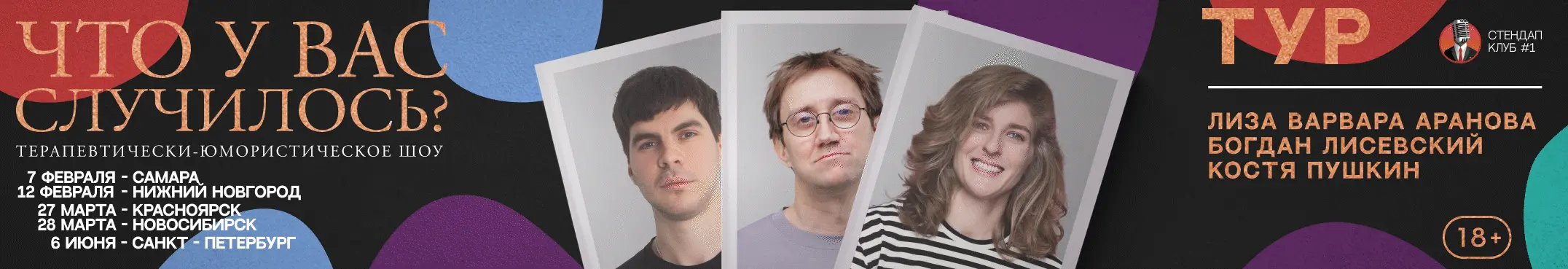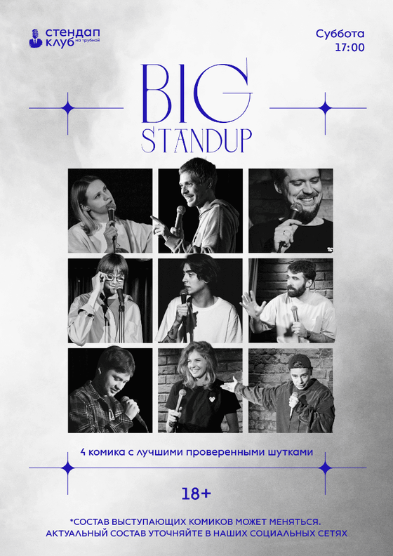 Состав выступающих комиков на афише может меняться, актуальный состав уточняйте в чат-боте или в наших социальных сетях