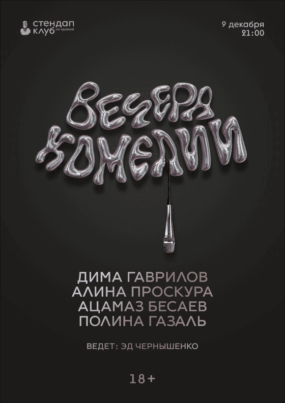 Состав выступающих комиков на афише может меняться, актуальный состав уточняйте в чат-боте или в наших социальных сетях